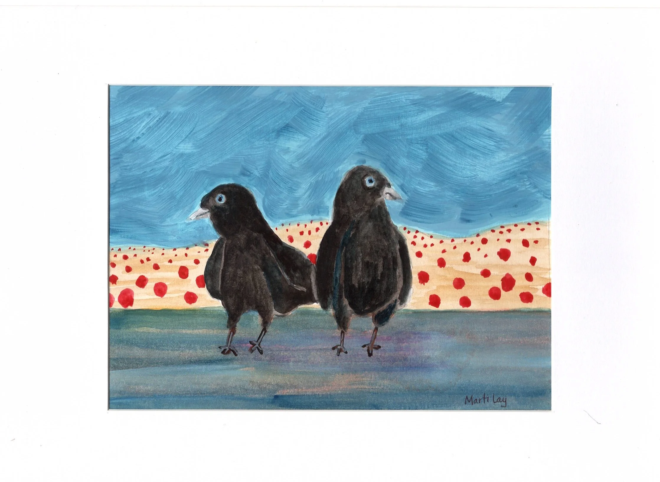 I’m having great fun preparing a collection of pet and wild animal pictures for my November show. These are for sale, so contact me if you’d like one. The geese and sheep are painted in gouache; the owl in acrylic, and the penguin in watercolor. Using different paints keeps me from growing bored, but it can feel uncomfortable switching because they are very different in layering, drying, and flow. Usually, I see an image in my mind and immediately know which medium I want to try (acrylic, gouache, or watercolor). I also paint the same animal or image in several different mediums and compare them. For instance, I’ve painted geese in acrylic, watercolor, and now, this one, in gouache. I’ve done this with owls and pet animals. too.
