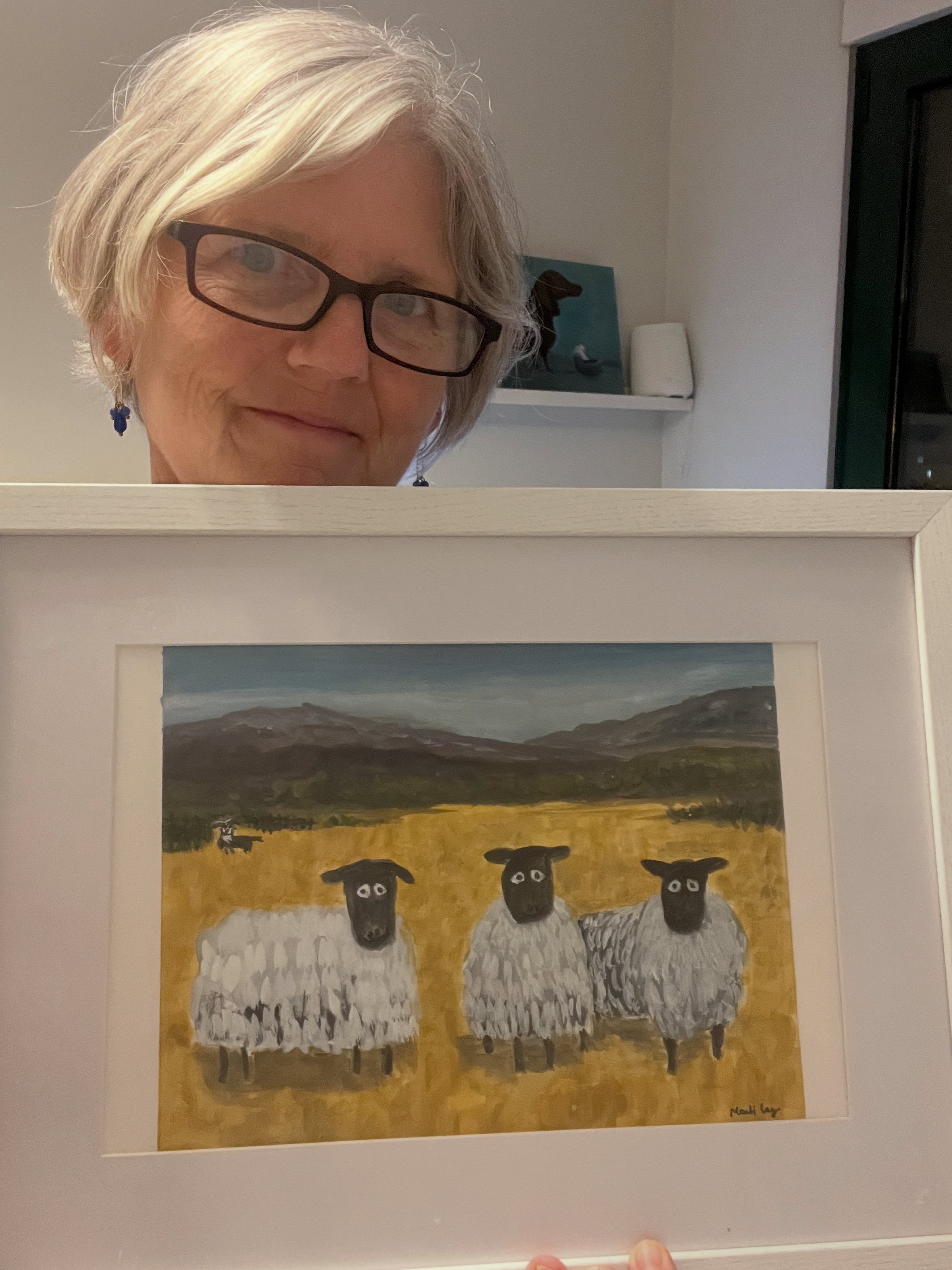 Are we just sheep? This framed gouache painting is $90 + shipping. It will be in the Bruno’s Lucky 13 display unless you order it now.