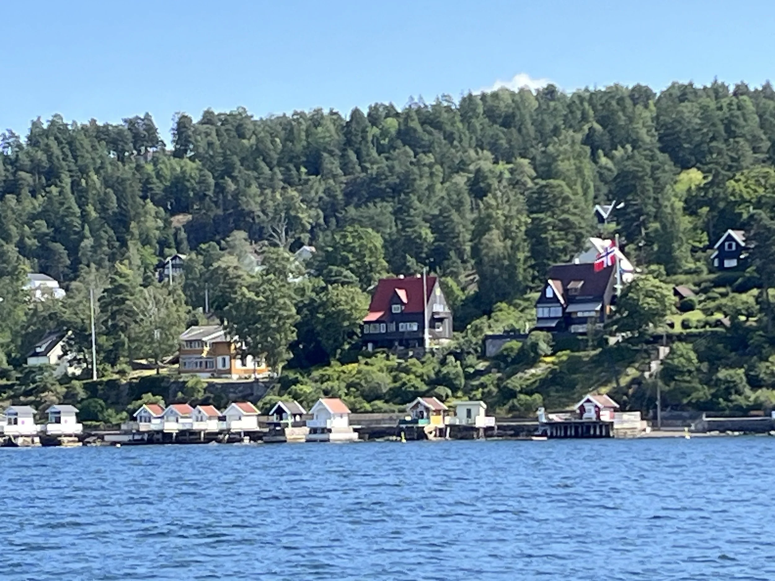 Cool waters of fjords near Oslo. Boat ride on a sunny afternoon for this year’s vacation.