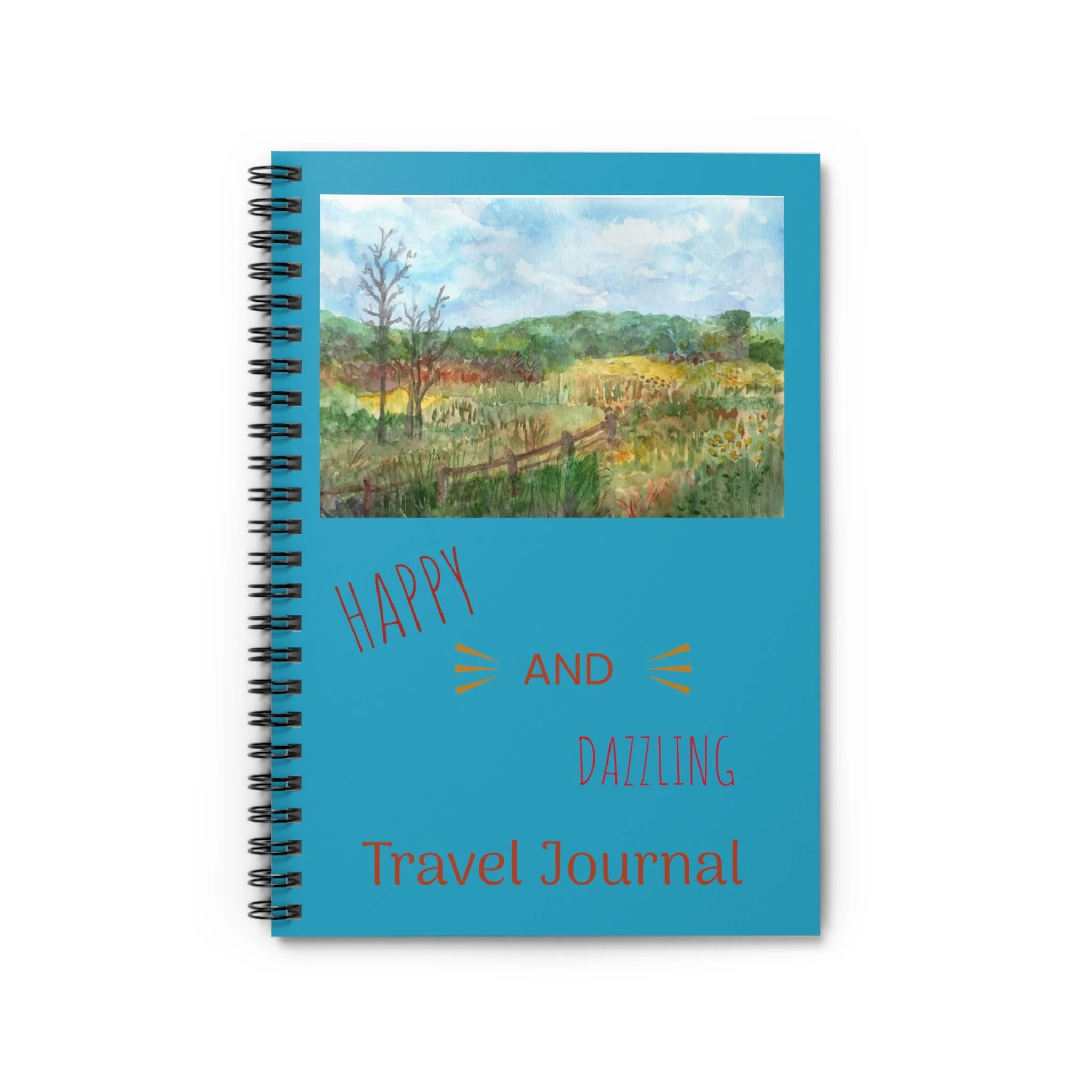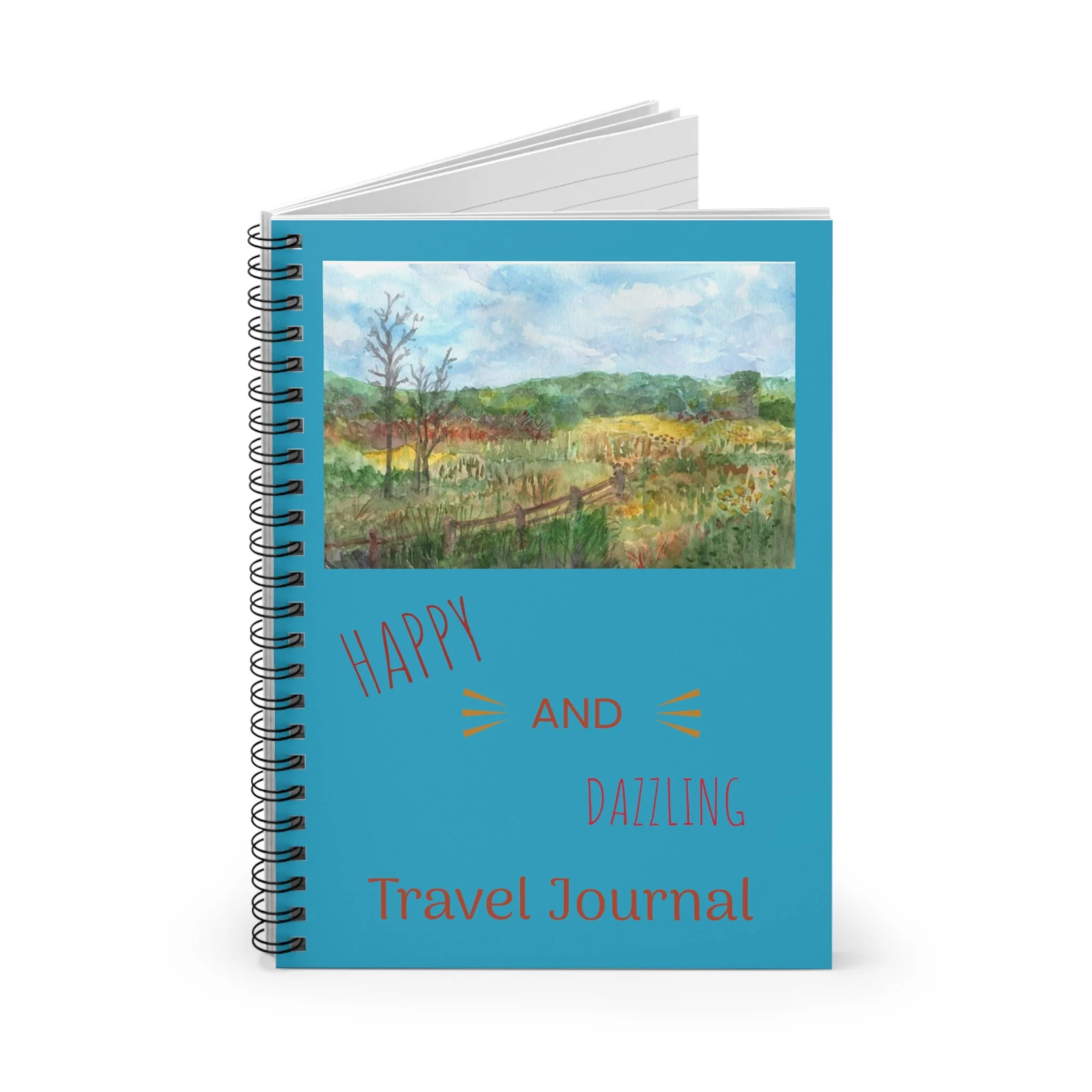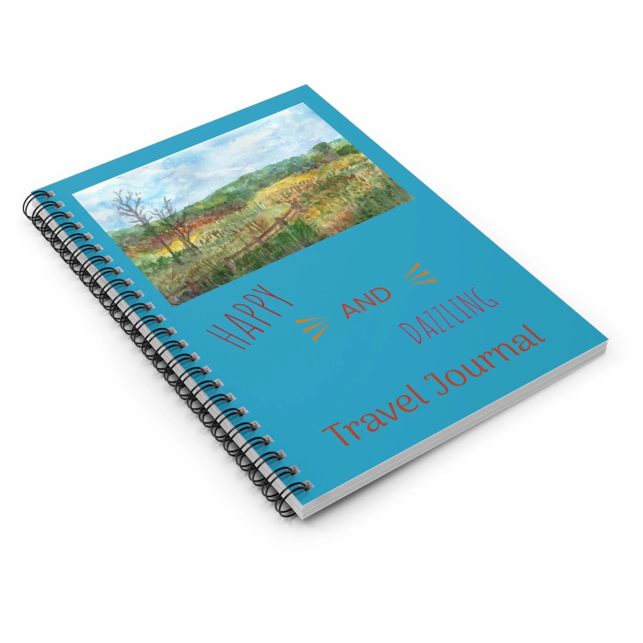 Travel Journal Notebook — 'Happy and Dazzling' scenic ruled/spiral journal
